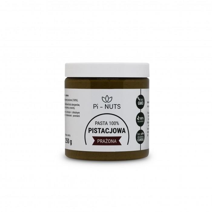 Pasta pistacjowa prażona smooth to doskonała kombinacja intensywnego smaku prażonych pistacji i aksamitnej tekstury. Idealna jako dodatek do ciast, deserów, a także jako smarowidło na pieczywo czy składnik smoothie. Bogata w składniki odżywcze, zdrowe tłuszcze i białko, stanowi świetny wybór dla osób prowadzących zdrowy styl życia. W pełni naturalna, bez sztucznych dodatków, ta pasta pozwala cieszyć się autentycznym smakiem pistacji w każdej potrawie.