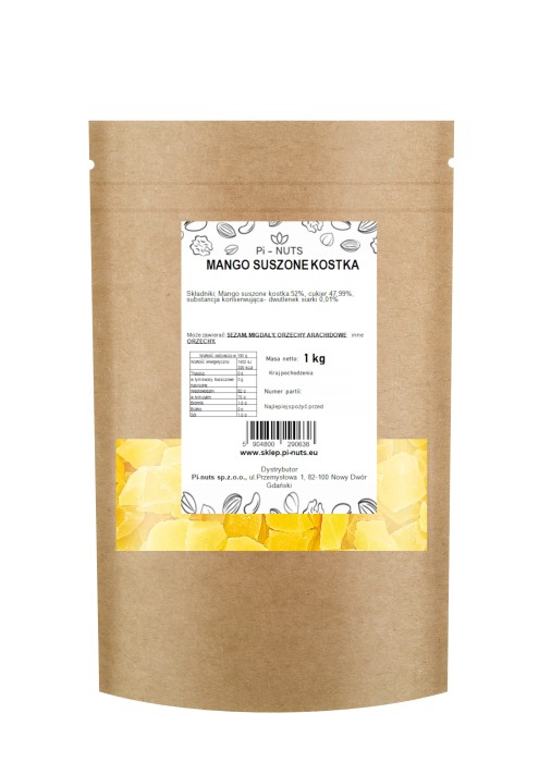 Odkryj intensywną, egzotyczną przyjemność dzięki naszym suszonym kawałkom mango z dodatkiem cukru. Ten produkt to idealne połączenie naturalnej soczystości dojrzałych owoców mango i delikatnej słodyczy,które razem tworzą niezrównane doznanie smakowe. Każdy kawałek jest starannie suszony, aby zachować pełnięsmaku i bogactwo wartości odżywczych, a przy tym jest wyjątkowo miękki i aromatyczny. Nasze mango w kostce z to nie tylko pyszna, ale i pożywna przekąska, która dostarcza naturalnej energii i witamin. Idealna na każdą okazję – zarówno do domowego podjadania, jak i do tworzenia kulinarnych inspiracji!