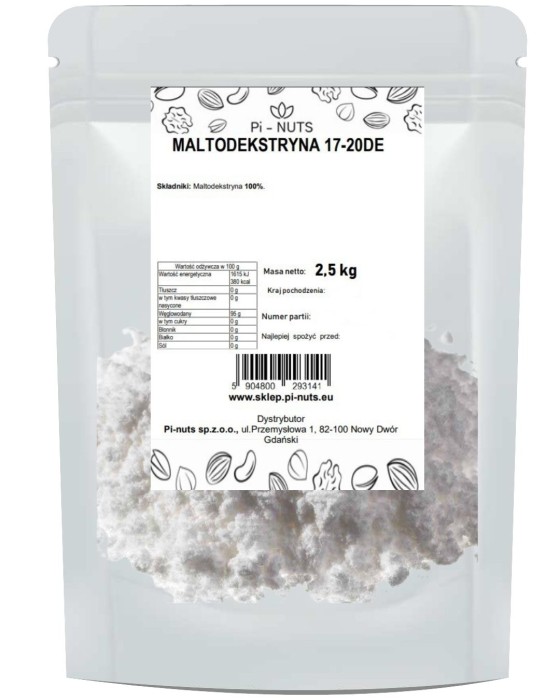 Maltodekstryna 17–20 DE to wielocukier w postaci białego, drobnego proszku, otrzymywany z hydrolizy skrobi (najczęściej kukurydzianej lub ziemniaczanej).