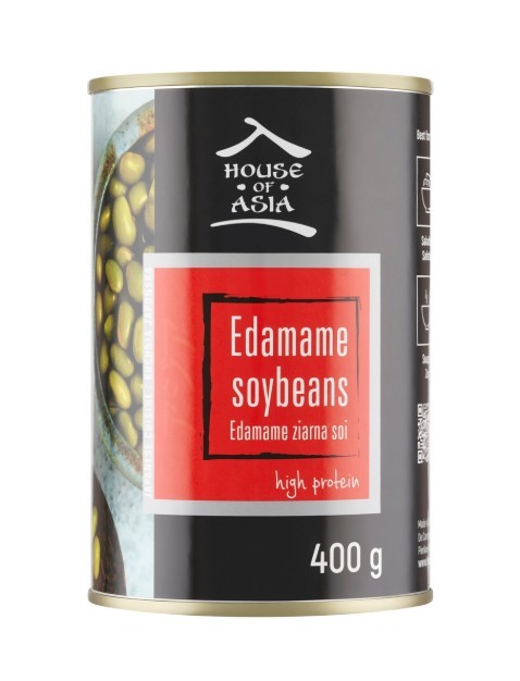 Fasola Edamame 400g Młode, zielone ziarna soi Edamame zamknięte w wygodnej puszce to szybki i praktyczny sposób na wzbogacenie codziennej kuchni o orientalny akcent. Produkt gotowy do użycia zaraz po otwarciu - nie wymaga gotowania ani obróbki termicznej. Delikatnie słonawy smak i jędrna konsystencja sprawiają, że doskonale sprawdza się jako przekąska, dodatek do sushi, sałatek, dań stir-fry czy popularnych azjatyckich bowli. Przechowywana w lekkiej zalewie, fasola zachowuje świeżość i naturalny kolor. Idealna do użytku domowego, cateringu oraz gastronomii