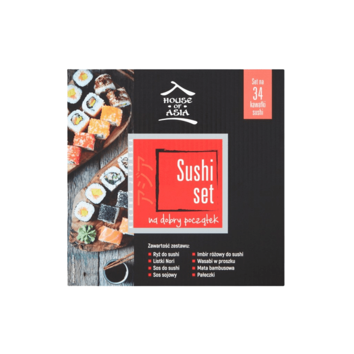Zestaw zawiera matę bambusową, pałeczki, ryż do sushi, nori i podstawowe składniki do przyrządzenia rolki maki w domu. Umożliwia naukę zwijania sushi, eksperymentowanie z nadzieniami i tworzenie własnych kompozycji. Produkt gotowy do użycia, idealny na prezent lub wspólny posiłek z rodziną i przyjaciółmi. Wszystko w jednym wygodnym opakowaniu.